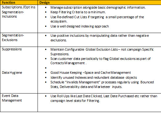 Managing a fully functional Marketing database is a challenge primarily due to the usage patterns that it needs to cater to. Some of the Use cases a cross channel marketing database needs to exhibit are.